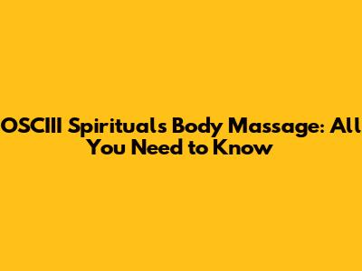 OSCIII Spirituals Body Massage: All You Need To Know